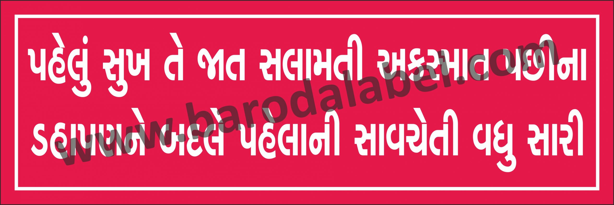 Pahelu Sukh Te Jat Salamati Akasmat Pachina Dahapane Badle Pahelani Savcheti Vadhu Sari (Gujarati)Vinyl printed sticker, Digital printed available with or without lamination film pasted on 5 mm thick PVC sunboard or 3 mm thick ACP (Aluminium Composite Panel) Sheet. Sunboard signage with 4 eyelets or ACP signage with 4 holes provided for fixing.